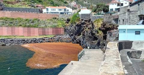 Esta manhã, conforme ilustra a imagem, uma mancha de sargaço dá nas vistas no Porto Moniz que, recorde-se, ainda em março motivou a atuação de uma equipa de limpeza da APRAM.