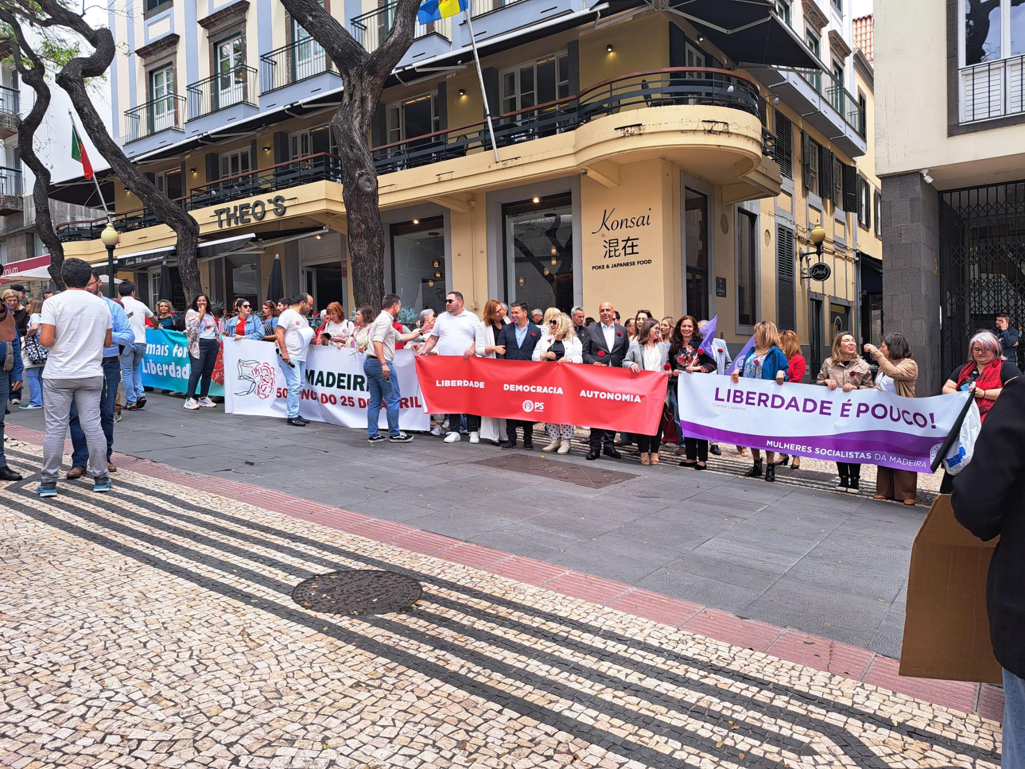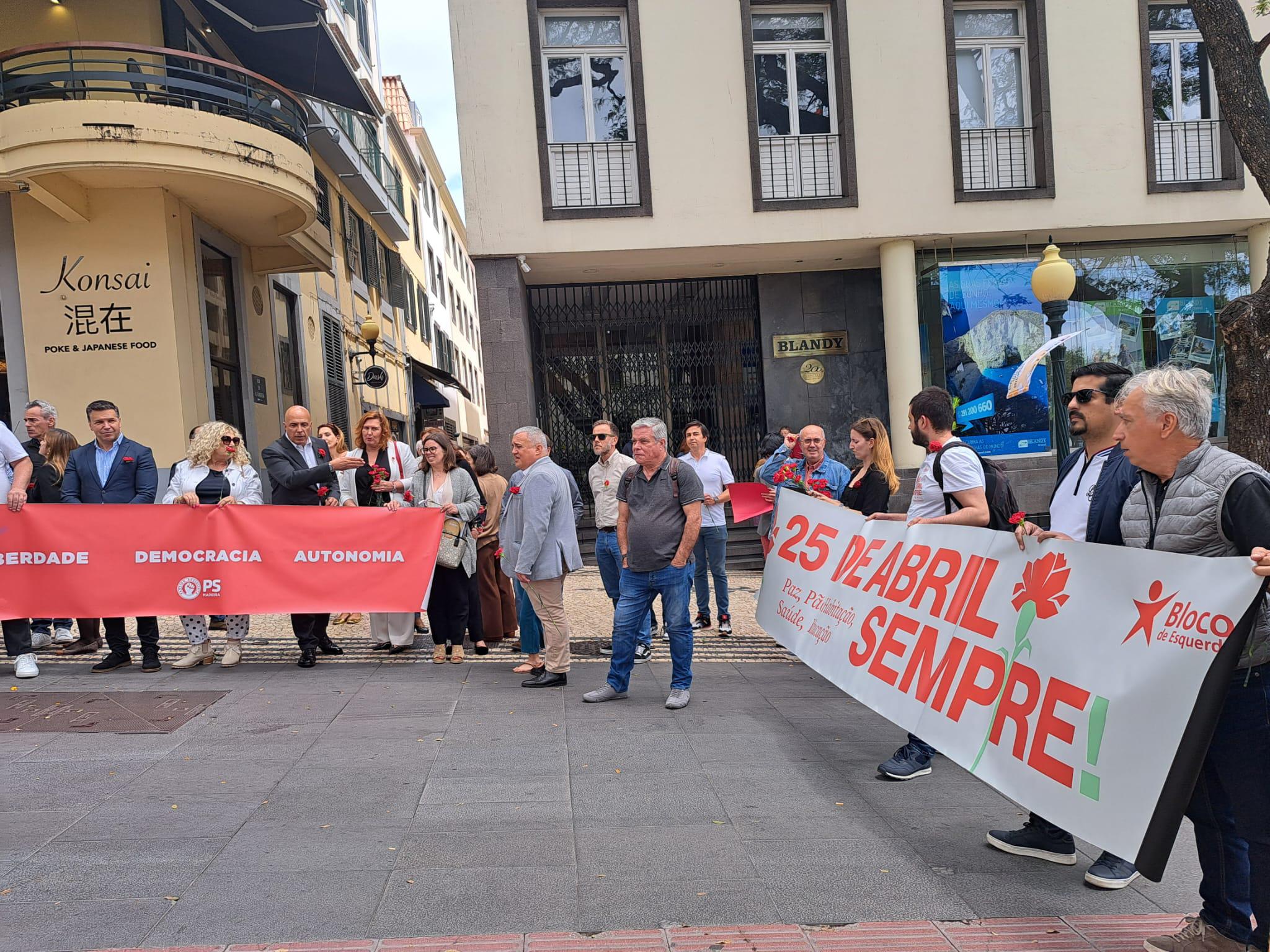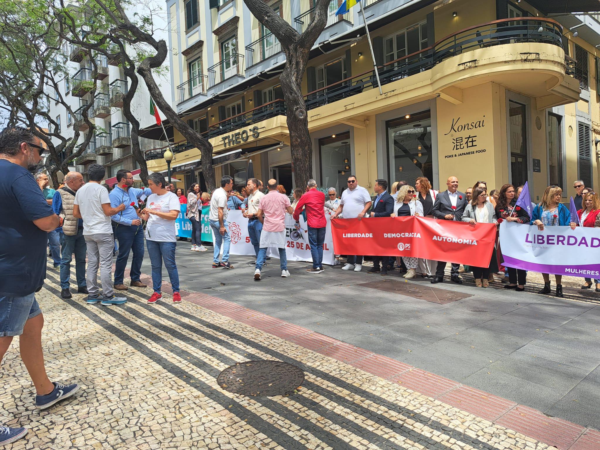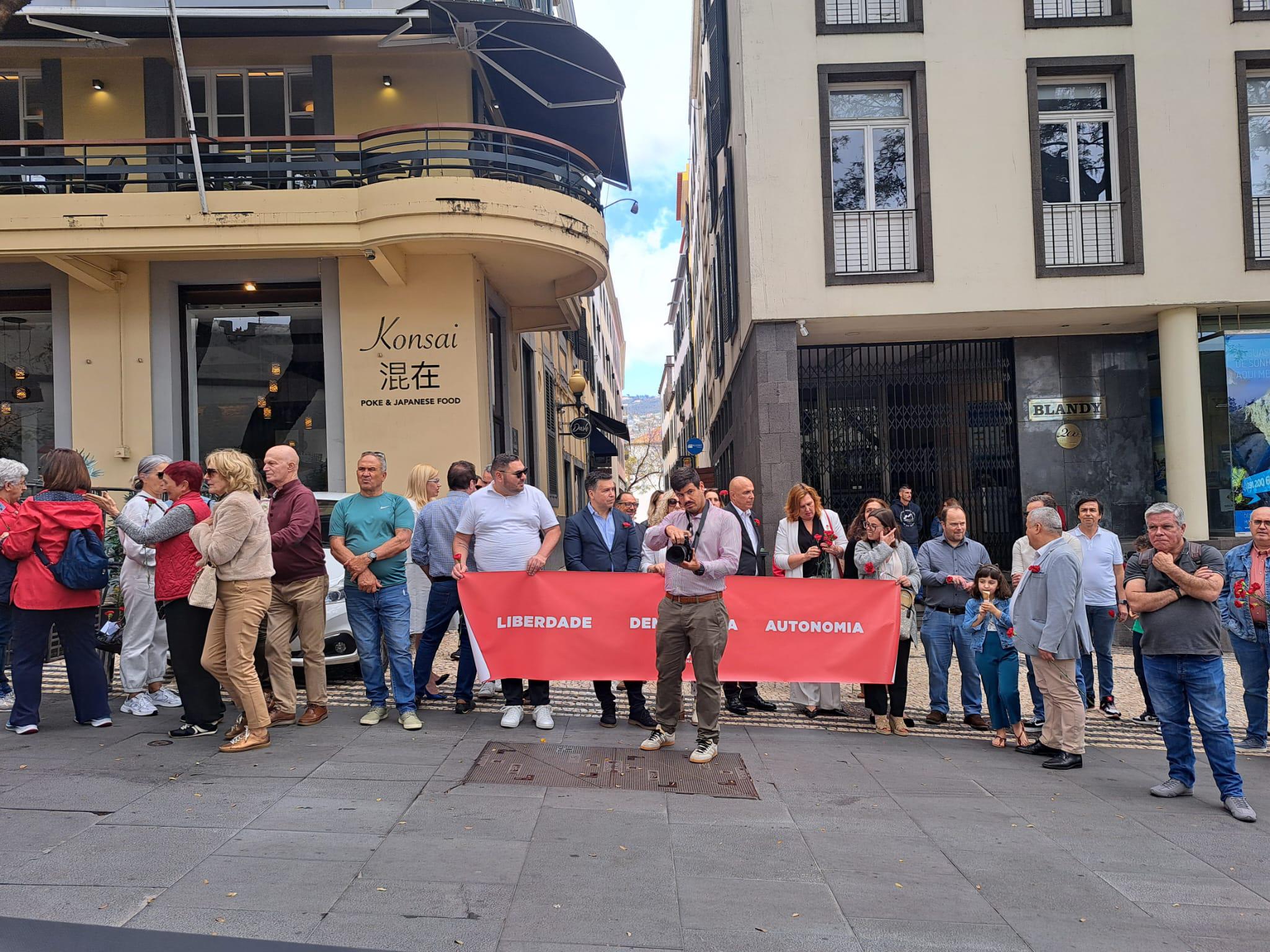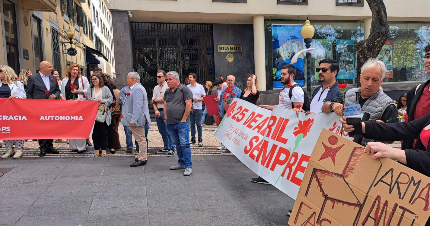 Decorre, neste momento, uma concentração junto ao Palácio de São Lourenço, convocada pela Comissão Organizadora dos 50 anos do 25 de Abril (assinalados no ano passado) mas que fez questão de voltar a lembrar a data apesar dos três dias de luto nacional pela morte do Papa Francisco.