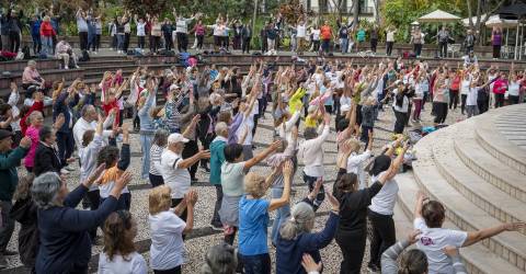 No âmbito das comemorações do Dia Mundial da Atividade Física e do Dia Mundial da Saúde, a Câmara Municipal do Funchal, através da Divisão de Longevidade e Envelhecimento Ativo, promoveu hoje uma caminhada entre o Teleférico e o Jardim Municipal, onde decorreu uma Mega-Aula de Atividade Física, com a participação de cerca de 400 utentes dos ginásios municipais, do Centro Comunitário do Funchal e da Universidade Sénior do Funchal. A aula foi dinamizada por professores dos ginásios da Barreirinha, Santo António e São Martinho.