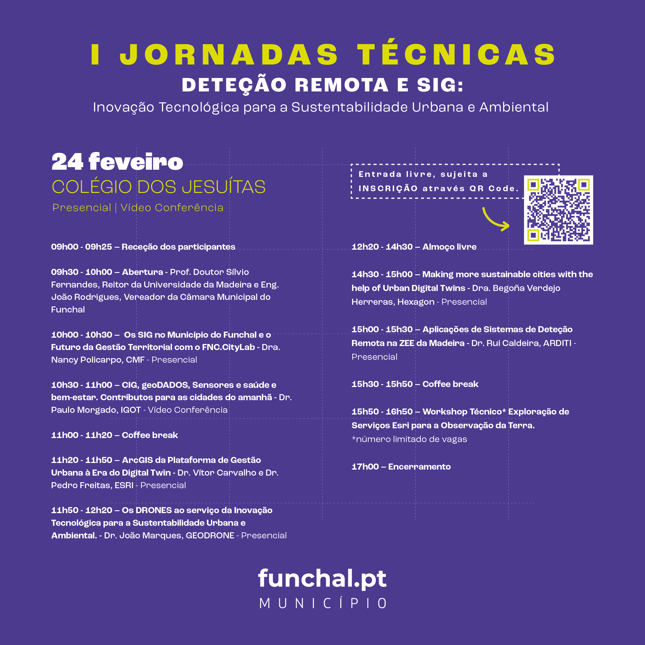 A participação é gratuita, mas sujeita a inscrição prévia (vagas limitadas) através do link: https://jornadastecnicassig.funchal.pt