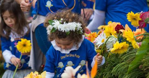 Pelas 11 horas, realiza-se a construção simbólica do Muro da Esperança, largada de pombos, seguida de espetáculo infantil.