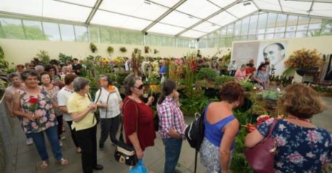 Os seniores entram no pavilhão onde vêm a exposição das flores e à saída colocam a flor e depois recebem um lanche.