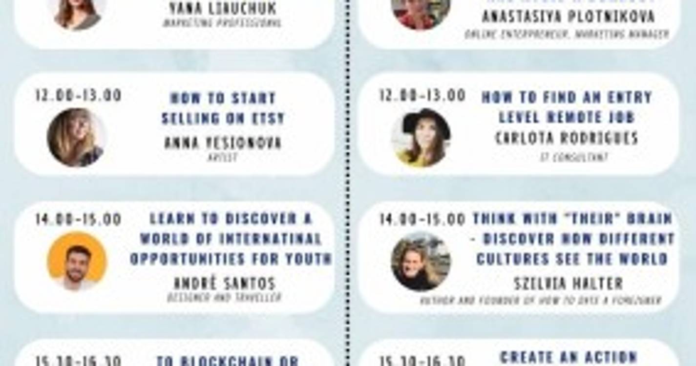 Como iniciar uma carreira em marketing online ou encontrar um trabalho remoto de nível básico sem habilidades específicas; como passar numa entrevista de emprego; como começar a investir em criptomoedas ou iniciar uma loja online Etsy; como encontrar oportunidades para jovens no estrangeiro; como criar um plano de ação para mudar de vida; são temas a abordar.