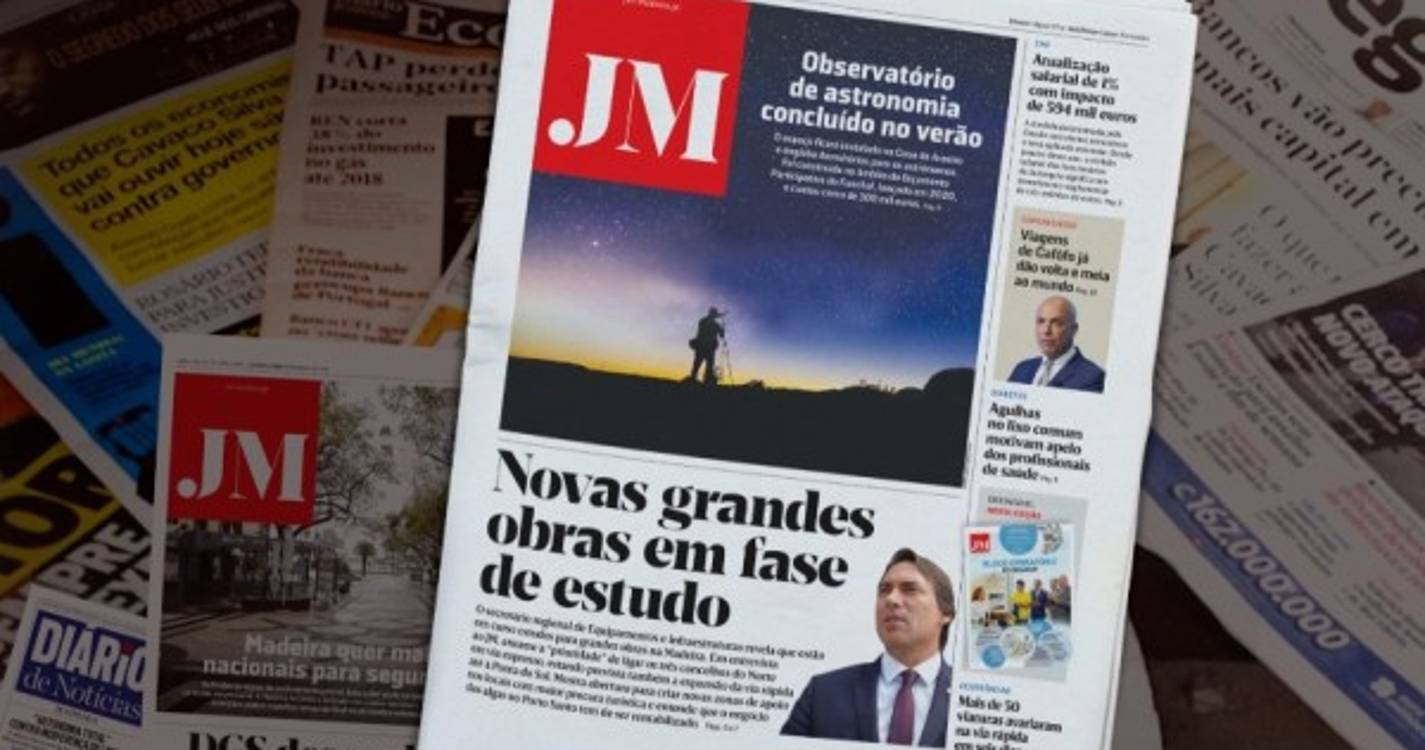 A entrevista é o assunto que faz a manchete de hoje do JM. Já a imagem dominante vai para um momento de astronomia, uma vez que o observatório para o efeito vai estar concluído este verão. O espaço ficará instalado na Casa do Areeiro e engloba dormitórios para os astrónomos. Foi construído no âmbito do Orçamento Participativo do Funchal, lançado em 2020, e custou cerca de 100 mil euros.