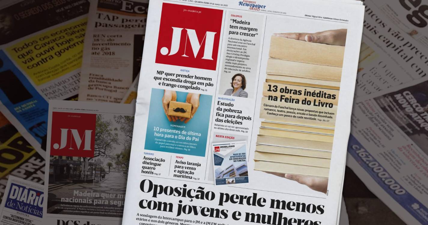 Esta é a notícia que faz a manchete de hoje do seu JM, numa Primeira Página que destaca 13 obras inéditas na Feira do Livro. Câmara do Funchal lança novas propostas que incluem romance, teatro, poesia, ensaio e banda desenhada. Conheça um pouco de cada novidade.