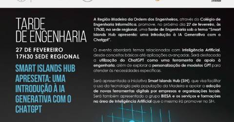 A Ordem dos Engenheiros - Região Madeira, através do Colégio de Engenharia Informática, promove, amanhã, pelas 17h30, uma ‘Tarde de Engenharia sobre Inteligência Artificial’.