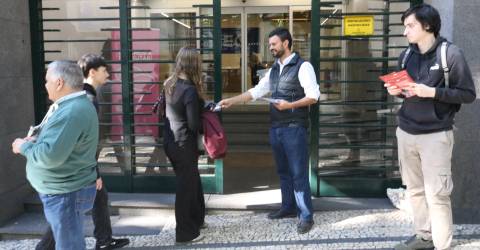 O PCP realizou esta sexta-feira, junto ao Call-Center da Altice, uma ação de contactos com jovens trabalhadores, denunciando “a intenção do Governo PSD/CDS de, através do Pacote Laboral, alargar e normalizar a precariedade, uma medida que atinge especialmente quem está a começar a vida”.