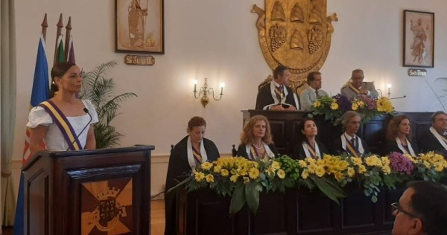 A sessão solene do dia do Funchal começa, na sala da Assembleia Municipal, com o discurso da deputada municipal do PCP.