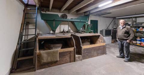 Os moinhos de água eram garante de farinha moída para várias famílias. Com a industrialização da moagem, estes mecanismos foram desaparecendo, mas Aires Lopes guarda uma relíquia na sua mercearia.