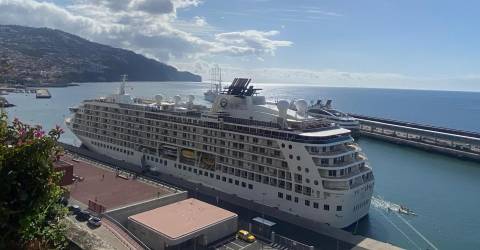 O The World chegou esta manhã, fica até às 17h00 de terça-feira, no Porto do Funchal, quando prossegue viagem para Casablanca.