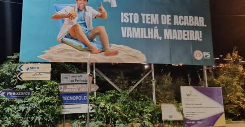 Dois dias depois depois de chumbado o orçamento regional e pouco antes de uma moção de censura que ameaça fazer cair o Governo Regional, o PS apresenta este cartaz gigante cujo protagonista é o presidente do executivo madeirense na praia. A imagem parece fazer referência aos incêndios de agosto, altura em que o governante deslocou-se ao Porto Santo de férias enquanto decorriam as operações de combate às chamas na Região.