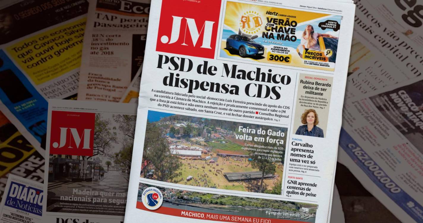 Esta é a notícia que faz a manchete de hoje do seu JM, numa Primeira Página cujo destaque fotográfico vai para um evento de renome. Feira do Gado volta em força. Cartaz alargado e mais de 100 expositores para repor dignidade do evento que decorre de 11 a 13 de julho.