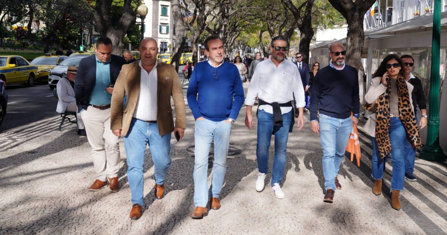 Miguel Albuquerque está a liderar a arruada e tem ao seu lado, entre outros, membros do Governo, os antigos vice-presidentes Pedro Calado e João Cunha e Silva, o antigo presidente da Assembleia Regional Tranquada Gomes e deputados da República Pedro Coelho, Paula Margarido, Paulo Neves.