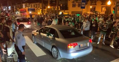 Homens, mulheres e crianças, de cachecol em riste e não descurando o uso da máscara de proteção, celebram um título há muito desejado, num ambiente que por breves instantes faz 'esquecer' a pandemia que assola o mundo.