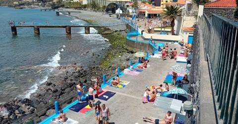 Com um vento agradável, neste complexo balnear, madeirenses e turistas aproveitam um bom dia de praia. Em Santa Cruz, as Palmeiras também estão a ser muito procuradas. Na hora que o JM passou por ali, várias famílias tomavam banhos de sol, mas algumas saiam devido ao pico alto das radiações ultravioleta. Havia também quem fosse chegando na hora de almoço, aproveitando a esplanada que serve esta praia.