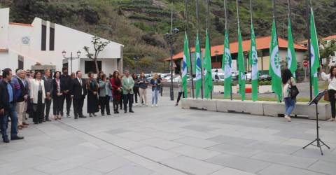 A sessão de abertura contou com a cerimónia de hastear das bandeiras eco-escolas na nova praceta, acompanhada pelo coro infanto-juvenil da Ribeira Brava.