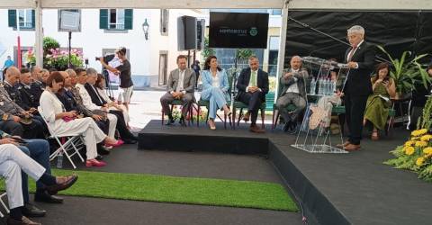 Filipe Sousa, presidente da Câmara Municipal de Santa Cruz, começa o discurso dos 509 anos do concelho a pedir desculpa aos militares pelo facto de “três autarcas” (que não nomeou) terem permanecido sentados durante o hino da Maria da Fonte.