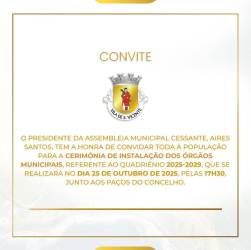 Aires Santos, presidente cessante da Assembleia Municipal, comunica que a cerimónia de instalação dos órgãos municipais, de São Vicente, para o quadriénio 2025/2029, realizar-se-á no próximo sábado.