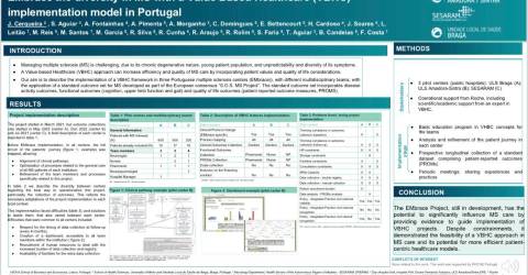 Iniciado em março de 2021, o projeto inclui uma educação básica sobre os conceitos de VBHC, uma análise e refinamento da jornada do doente em cada centro e uma recolha longitudinal prospetiva de indicadores de atividade da doença, indicadores funcionais (cognição, função do membro superior e marcha) e indicadores de qualidade de vida (patient reported outcome measures, PROMS).