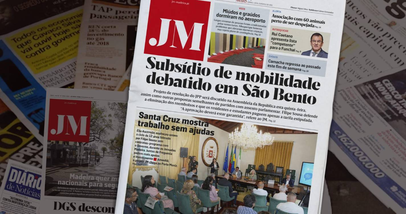 Esta é a notícia que faz a manchete de hoje do seu JM, numa Primeira Página que destaca as Jornadas Madeira. Santa Cruz mostra trabalho sem ajudas. Élia Ascensão enalteceu ontem o ciclo de 12 anos liderado por Filipe Sousa sem contratos-programa com o Governo, durante as Jornadas Madeira. Juntas de Freguesia pedem mais apoios e investimento. Amanhã, o projeto JM chega ao Porto Moniz.