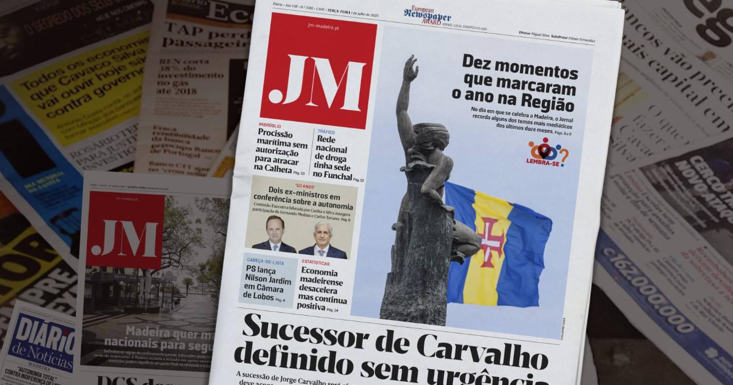 Esta é a notícia que faz a manchete de hoje do seu JM, numa Primeira Página que destaca dez momentos que marcaram o ano na Região. No dia em que se celebra a Madeira, o Jornal recorda alguns dos temas mais mediáticos dos últimos doze meses.
