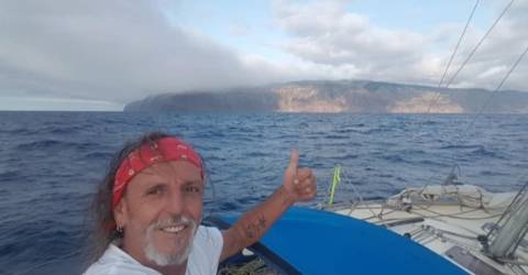O velejador Henrique Afonso, mais conhecido por 'Pirata' da Madeira, realizou meia volta ao Mundo a bordo do veleiro 'Sofia do Mar', percorrendo 30.000 milhas náuticas, desde 15 de janeiro de 2019, em 923 dias.