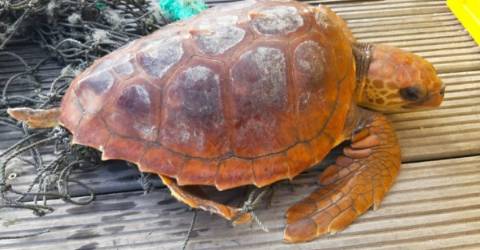 Uma equipa do Corpo de Vigilantes da Natureza detetou, esta manhã, à entrada da marina da Quinta do Lorde, no Caniçal, uma tartaruga marinha (Caretta caretta) presa numa rede.