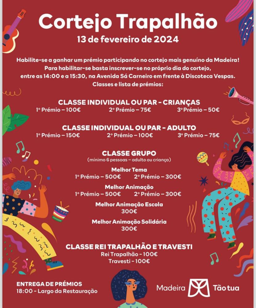 Recorde-se que o Cortejo Trapalhão parte da Avenida Francisco Sá Carneiro, percorrendo a Rotunda Francisco Sá Carneiro, a Avenida do Mar e das Comunidades Madeirenses (faixa sul), até à Praça da Autonomia.