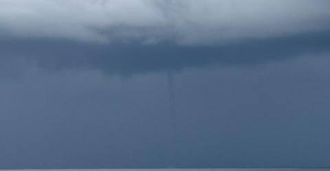 Uma tromba de água caiu, esta manhã, por volta das 09h10, no mar na zona do Lido.