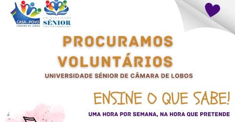 A Universidade Sénior de Câmara de Lobos, projeto da Casa do Povo de Câmara de Lobos, está a recrutar professores voluntários para o próximo ano letivo.