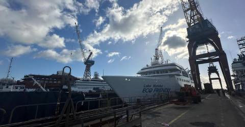O navio que todos os dias faz a ligação entre a Madeira e o Porto Santo está nos Estaleiros Navais de Viana do Castelo para a habitual manutenção anual.