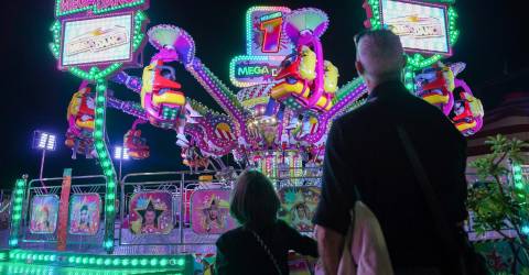 O parque de diversões, que já esteve no Almirante Reis, passou pela Praia Formosa e pela Cancela, está há oito anos no Cais 8.