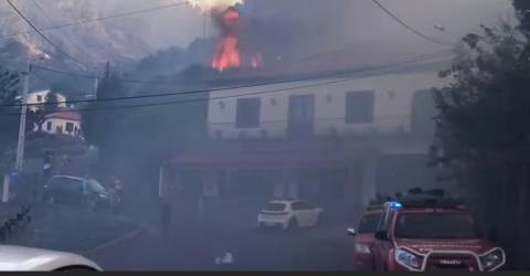 Numa altura em que o fogo continua a lavrar na freguesia do Jardim da Serra, populares partilham, nas redes sociais, registos fotográficos e de vídeo, ilustrando a dimensão do fogo.