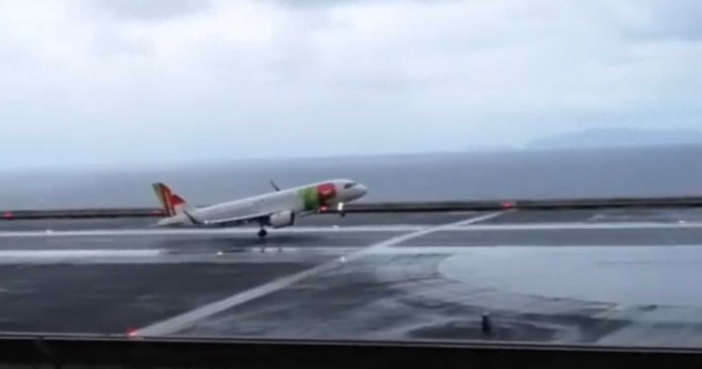 A aeronave tentou pousar com as rodas na pista, conforme mostram as imagens captadas por Sílvio Silva às 8h12 desta segunda-feira, mas acabou por borregar, só tendo conseguido aterrar em solo madeirense à segunda tentativa.