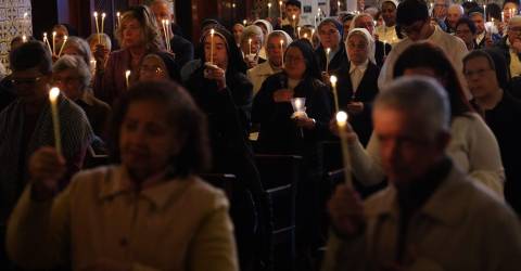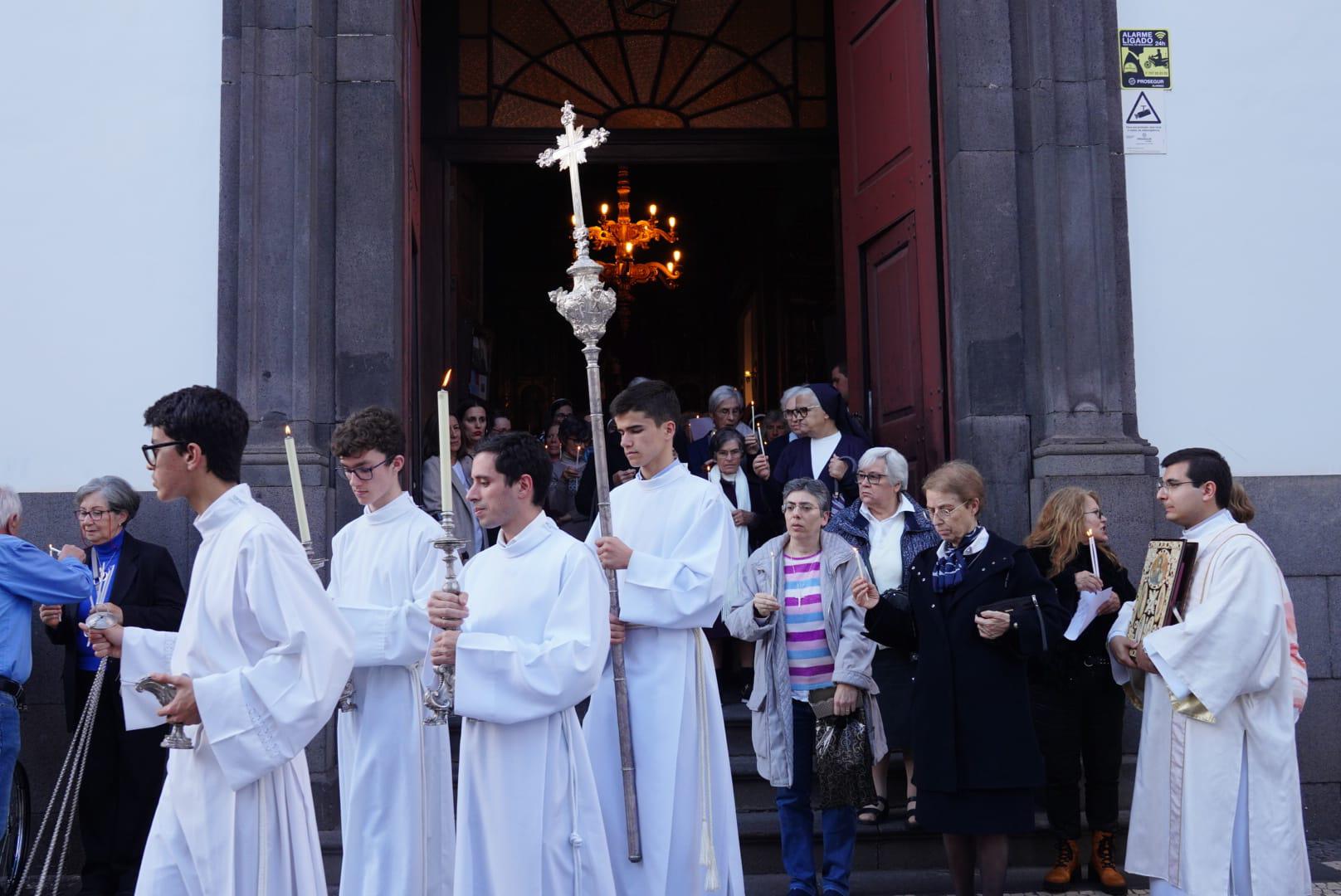 A primeira parte da celebração decorreu, na igreja dos carmelitas descalços, com as vésperas solenes seguida da bênção das velas. Após este momento, ao som de ‘A luz de Cristo ilumina a terra inteira, aleluia’ saiu a procissão em direção à catedral, onde haverá a eucaristia.