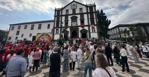 São muitos os fieis que, por esta altura, se concentram em frente à Igreja do Colégio, no Funchal, para a Festa do Corpo de Deus.
