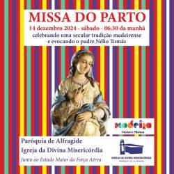 Na Paróquia de Alfragide, refere, a Missa do Parto é celebrada apenas uma vez, preservando a tradição e a estrutura da celebração, com a evocação do Espírito Santo. A igreja estará ornamentada com o tradicional bordado da Madeira, com o tecido com as riscas tradicionais do Arquipélago da Madeira, com a ‘Lapinha’, as searinhas e a fruta.