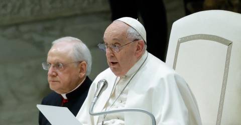 ”Preparei um discurso, mas como podem ver, não estou a conseguir ler por causa da bronquite. Pedi a (Monsenhor Filippo) Ciampanelli para o ler”, disse o Papa, com a voz afetada, depois de passar vários dias engripado e ir ao hospital fazer exames.