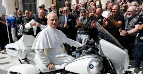 Um grupo de motards, chamado Jesus Bikers, presenteou hoje o Papa Leão XIV com uma moto BMW branca personalizada com o nome do sumo pontífice.