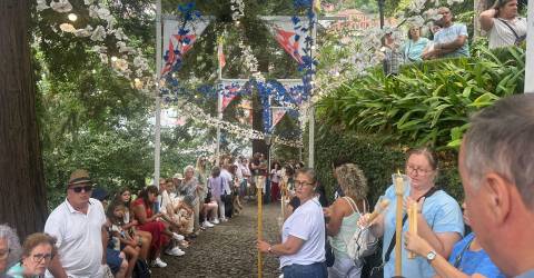 Procissão em honra de Nossa Senhora do Monte já começou, com centenas de promessas a caminharem com devoção. Há pés descalços, muitas velas em punho e fé no coração dos fiéis.