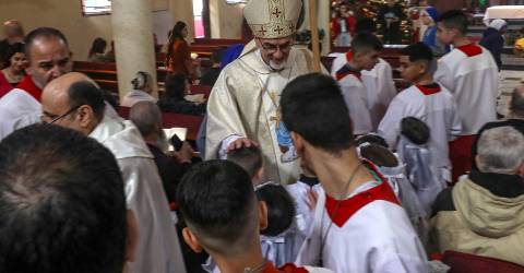 “Para mim é uma grande lição que, mesmo aqui em Gaza, na situação talvez mais deprimente do mundo, seja possível celebrar o Natal”, afirmou Pizzaballa à entrada da igreja da Sagrada Família, sob o zumbido de drones israelitas.